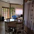 Sobrado em condomínio para locação anual, Imóvel com churrasqueira privativa, Decoração artesanal e mobília rústica.